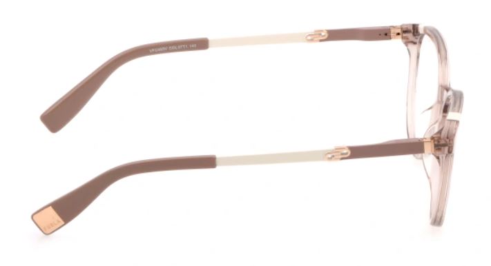 Furla VFU493V eyeglasses in transparent beige brown with an oval shape and full-frame design in acetate material are a stylish and sophisticated choice for women.The transparent beige brown color gives these glasses a soft, neutral tone that?s both versatile and elegant, making them easy to pair with a wide range of outfits. The subtle, warm hues add depth to the frame without being overly bold, offering a refined and classic look.rn The oval shape is a timeless design that adds a gentle, rounded aesthetic, making these glasses flattering for most face shapes. Oval frames have a soft, balanced look that works well for individuals with more angular or square features, as it helps to create a more harmonious contrast.