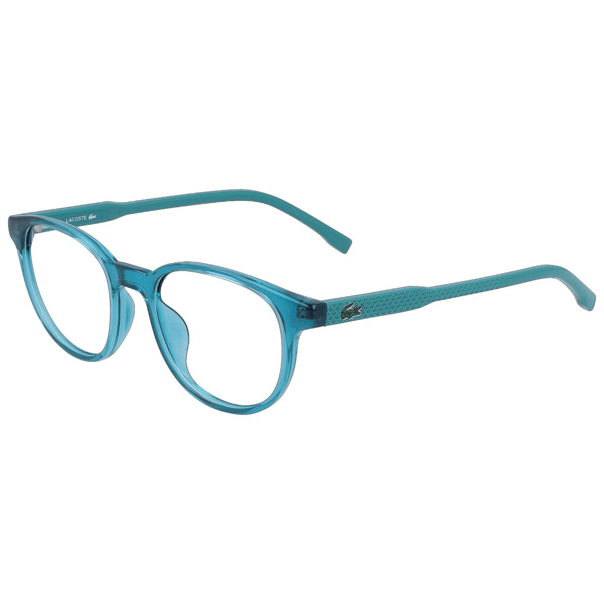 Lacoste L3631 is a full-frame eyeglass with an oval shape and a soft, refreshing Light Blue color, designed primarily for kids or teenagers. Made from acetate material, this frame is lightweight, durable, and comfortable, offering a flexible fit that?s ideal for young wearers. The gentle light blue color gives it a playful, yet stylish look, while the oval shape ensures a flattering fit for a variety of face shapes. This frame combines both comfort and a trendy appearance, making it a perfect choice for everyday wear for kids and teens.